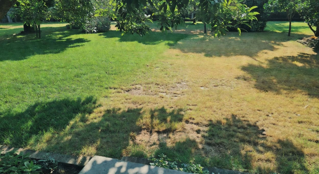 解決:先補播——重新灑種在禿地上(澆透水後再灑)。接著改善濕度管理,建立「澆水計畫」避免時乾時濕。如果再等下去成本更高,不如直接考慮改用鋪設。
