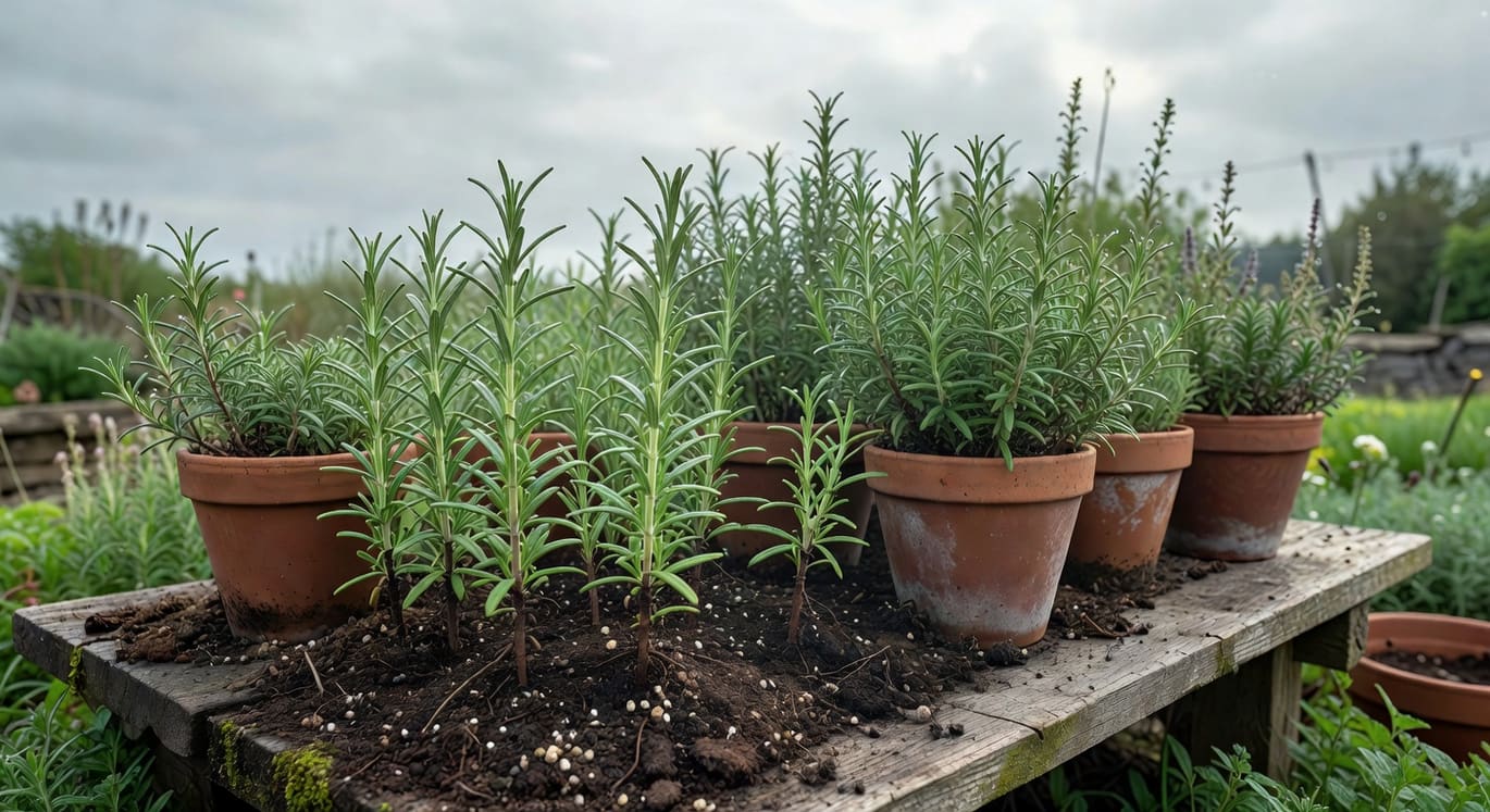 迷迭香很容易從扦插繁殖,這也是我一直有新苗可以分享給朋友的原因。選擇長得健壯的新莖,取 5 到 10 公分長的梢段,確認上面有 2 到 3 個葉芽。用剪刀在基部斜切,增加接觸面積。沾一點發根劑(這步可選但強烈推薦),然後插進無土介質裡——我用泥炭土加珍珠岩 1:1 混合。保持介質濕潤但不浸水,大概 15 到 20 天就會生根。之後就能移到正常的盆土裡,從小苗養起。