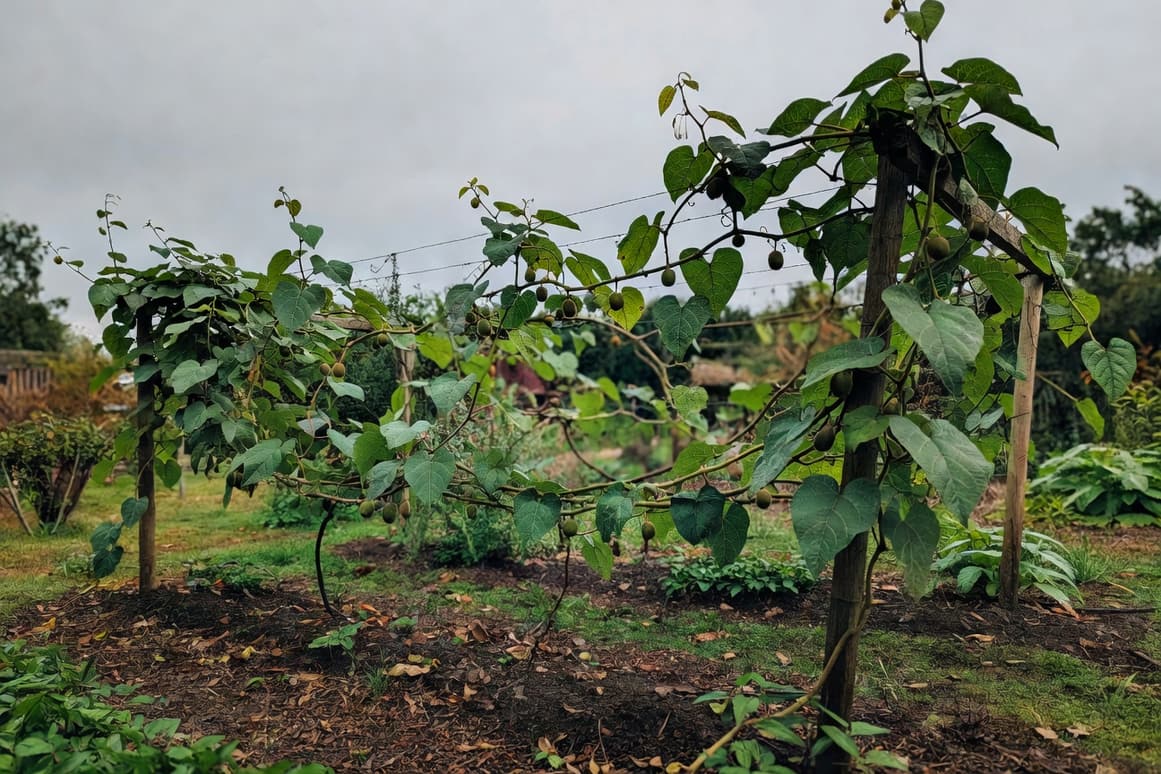 奇異果攀藤的特性讓它成為棚架種植的完美候選。如果你想要一種既能生產甜美果實、又能提供綠蔭遮陰的果樹,奇異果絕對是最佳選擇。我家的棚架現在已經滿載著奇異果藤蔓,每年秋天採收時總是大豐收。但要種好奇異果,最關鍵的就是「棚架」這道功夫。