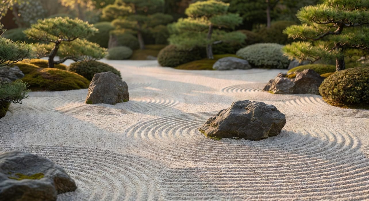 在喧囂的塵世間,有一類園子,能以最簡樸的語言,訴說最深邃的意蘊。那就是日式禪園,或稱枯山水庭院。它不需要繁花似錦,不需要流水潺潺,只以耙過的砂石、精心擺放的岩石,以及寥落的植物,邀請訪客進入一場無聲的冥想。走入這樣的庭院,彷彿進入了另一個時空,身心都被喚醒,重新與自然對話。這種源自六世紀禪宗僧侶的藝術形式,至今仍散發著穿越時光的寧靜力量。