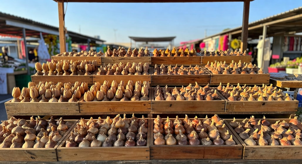 台灣各大花市通常在九月底到十月開始大量進貨球根,這是選購的最佳時機。如果你等到十一月才去,往往就剩一些規格較小或是品相不好的球根,開花品質也會差很多。