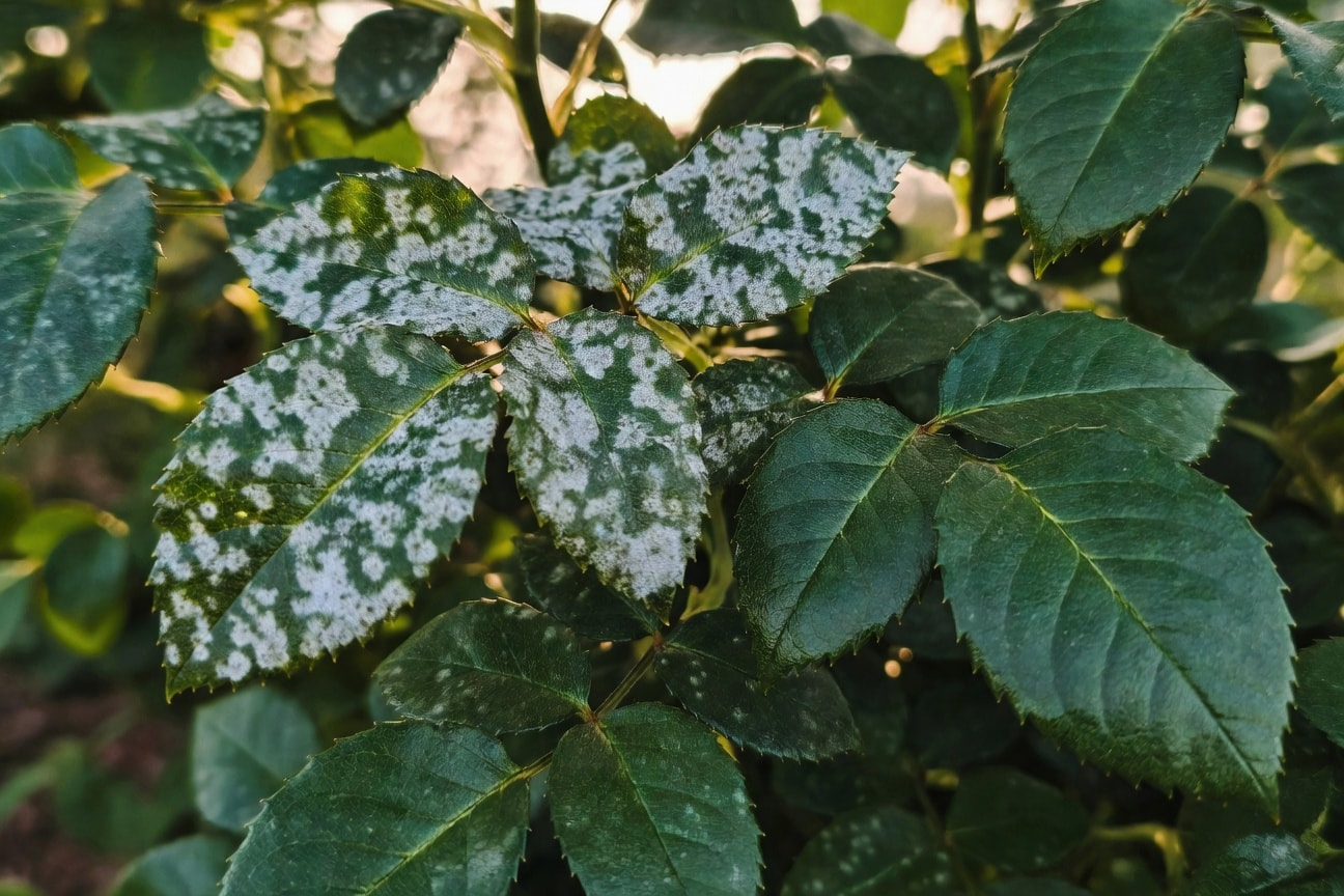 稀釋過氧化氫(hydrogen peroxide,雙氧水)溶液每公升水加入 10 毫升濃度 3% 的藥用雙氧水(稀釋比約 9:1),噴施在已感染白粉病初期的葉片上,過氧化氫的氧化作用能直接破壞菌絲。但注意這個方法對已嚴重感染的部位效果有限,主要作用是早期抑制。