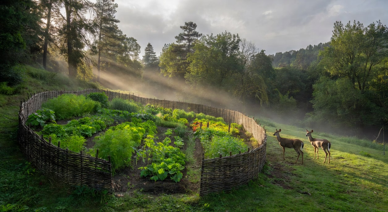 最外層——種植鹿不愛吃的香草與針葉樹形成第一道「拒食帶」,讓鹿在進入核心區前先聞到強烈芳香而失去興趣。
