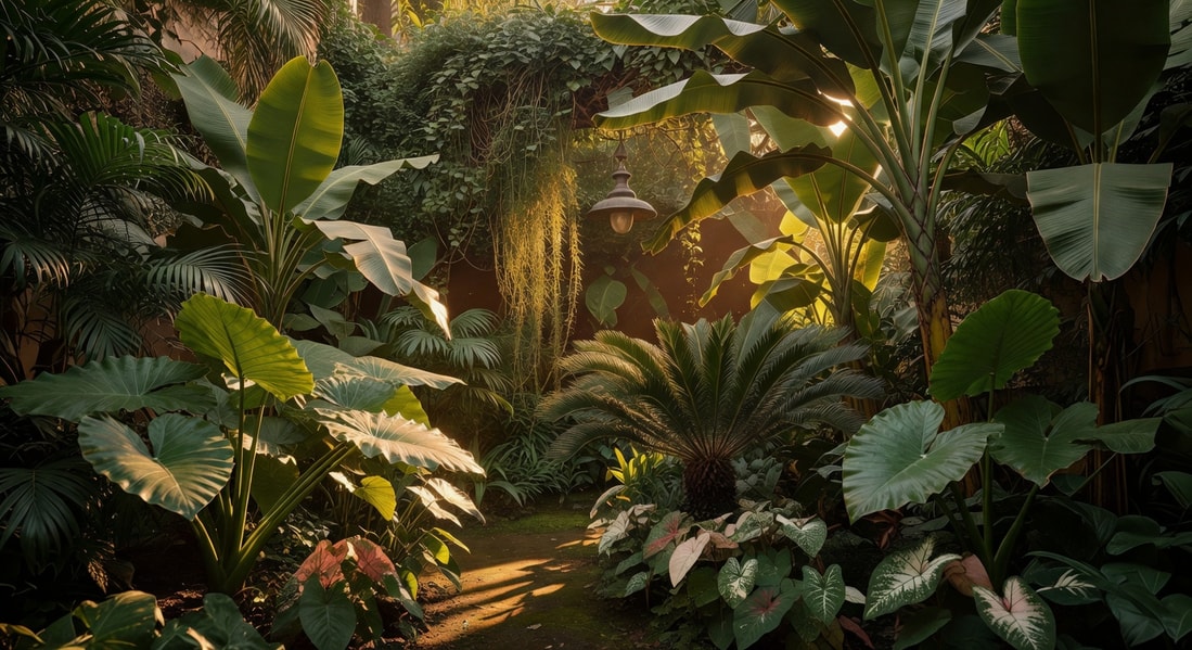 這就是熱帶風花園(exotic jungle garden)的魅力。它不必真的座落於赤道,也無需終年 30 度的濕熱氣候——關鍵在於三個字:大葉、層次、密植。只要掌握這三個原則,即便在台灣冬日略帶寒意的清晨,一座都市角落的庭院、甚至一座小陽台,也能營造出熱帶叢林的氣息。