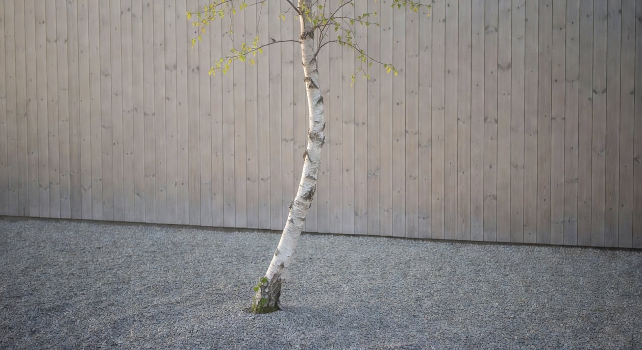 「less is more」是北歐設計的信條,也是這類花園最底層的美學。當各位把不必要的裝飾、過多的品種、過於搶眼的色塊全部拿掉,剩下的每一個元素都會被放大、被凝視。一叢羽衣草(Alchemilla mollis)在空曠的礫石地上看起來會比擠在花壇裡更溫柔;一棵孤植的白樺(Betula)倚在灰牆前,葉影在清晨慢慢搖晃,像一首還沒寫完的詩。