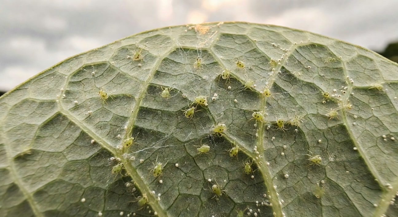 對比其他吸汁害蟲:薊馬造成的傷斑較大較銀色且葉面有黑色糞點;蚜蟲聚集處可見分泌的蜜露;粉蝨則飛舞可見。看到細絲網+葉面 stippling,幾乎百分之百是葉蟎。