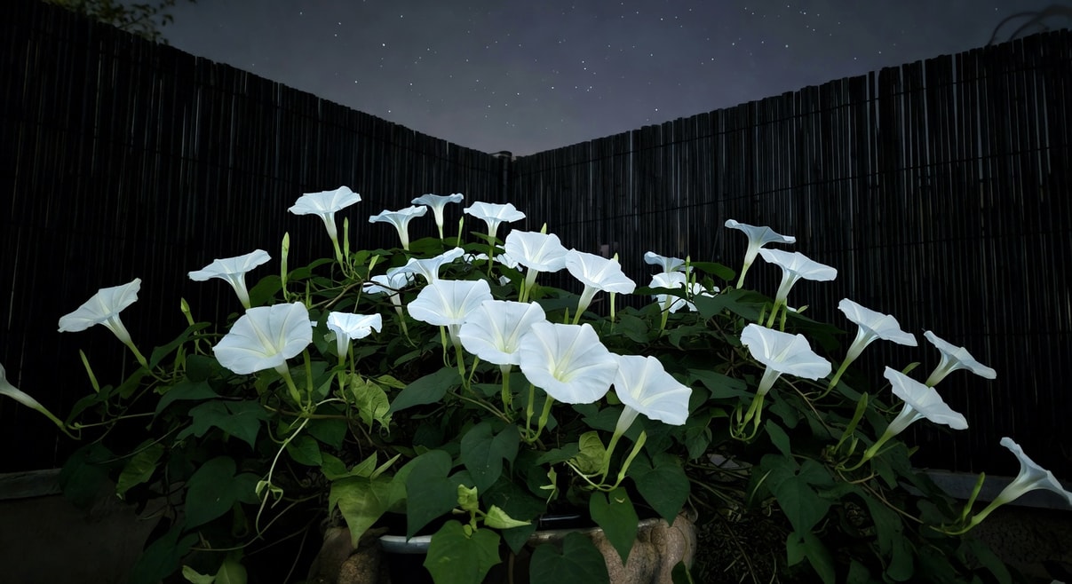 白花園的靈魂,在於一群只在夜間展開的花朵。它們演化出這樣的節奏,是為了吸引夜蛾與夜行昆蟲授粉,因此多半色澤潔白(在月光下最顯眼)、並散發濃烈的香氣(夜間視線不佳,氣味是唯一的通訊)。