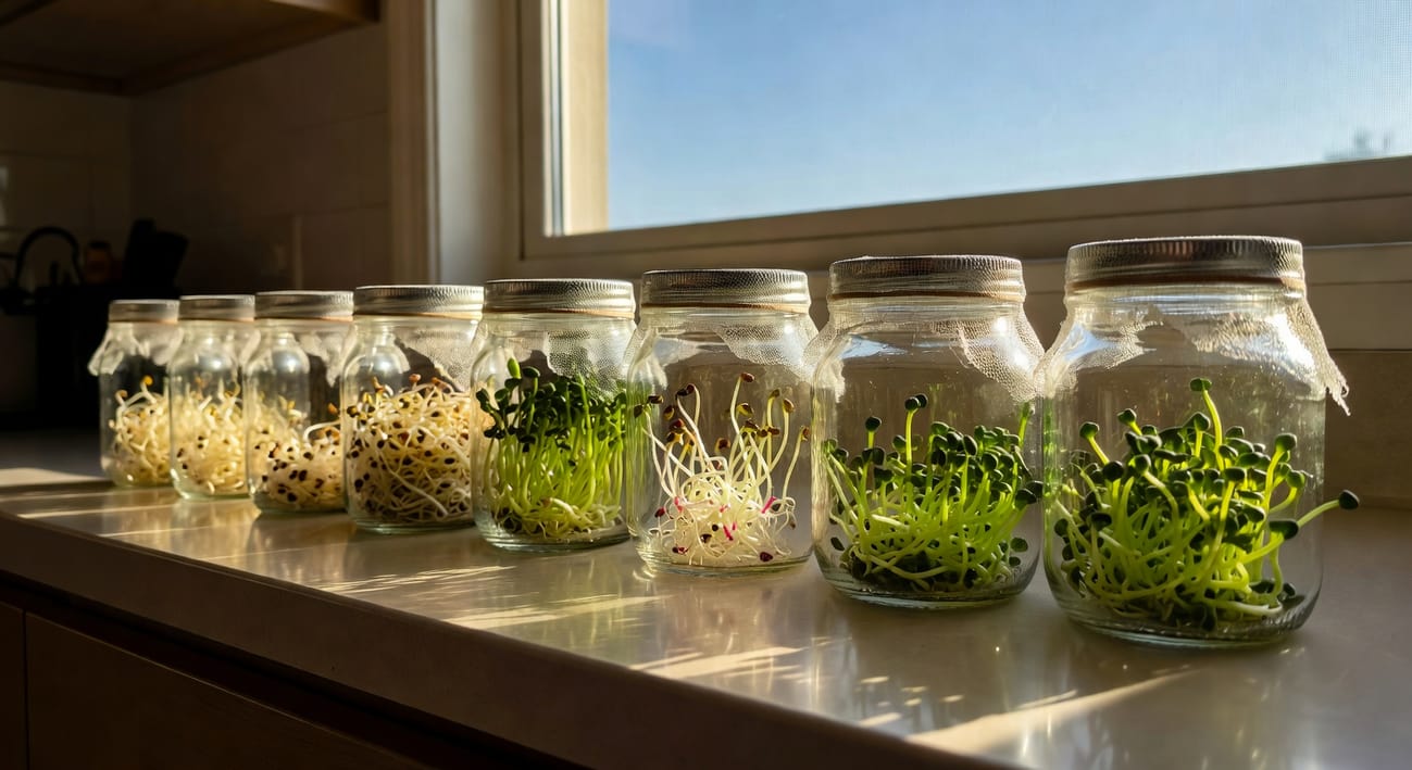 我自己的經驗是,種一次就回不去超市那種已經發黃、有淡淡異味、還貴得不合理的袋裝芽菜。自己種的那股清甜脆嫩,夾進三明治、鋪在沙拉上、撒在味噌湯裡、拌進泡麵,瞬間讓整道菜升級一個等級。室內十八到二十二度、每天花你不到三分鐘沖洗,就能源源不斷收成。今晚就把那包躺在抽屜深處的種子拿出來泡一泡,一週後你就會感謝現在這個決定的自己。