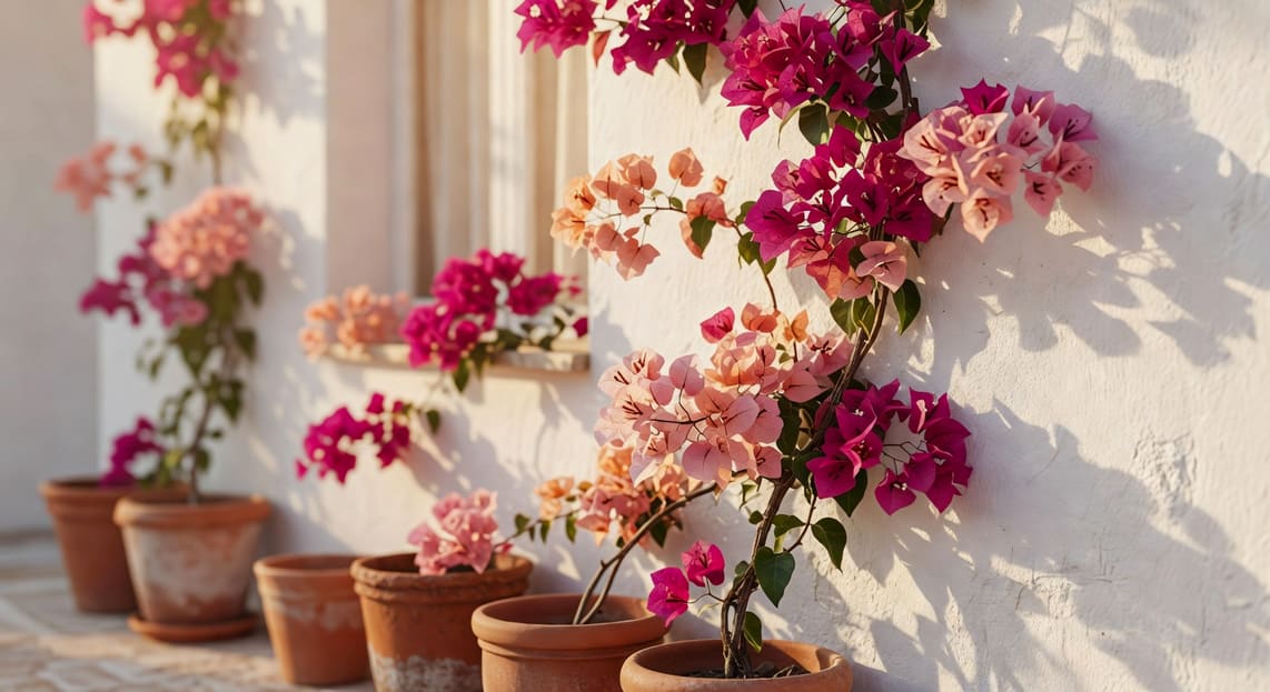 第一,略乾控水——讓介質在兩次澆水之間確實偏乾,製造「乾旱壓力」,誘發花芽分化。第二,高鉀低氮施肥——花期前切換成磷鉀比例較高的液肥,停用均衡肥與氮肥。第三,充足日照——若陽光不足,即使控水控肥也難開花,盆植者可考慮移至頂樓或南向陽台。第四,盆植者可忍受根壓迫——九重葛並不排斥根系擁擠,略顯 pot-bound 的盆栽,反而比過於寬鬆的盆栽更願意開花。