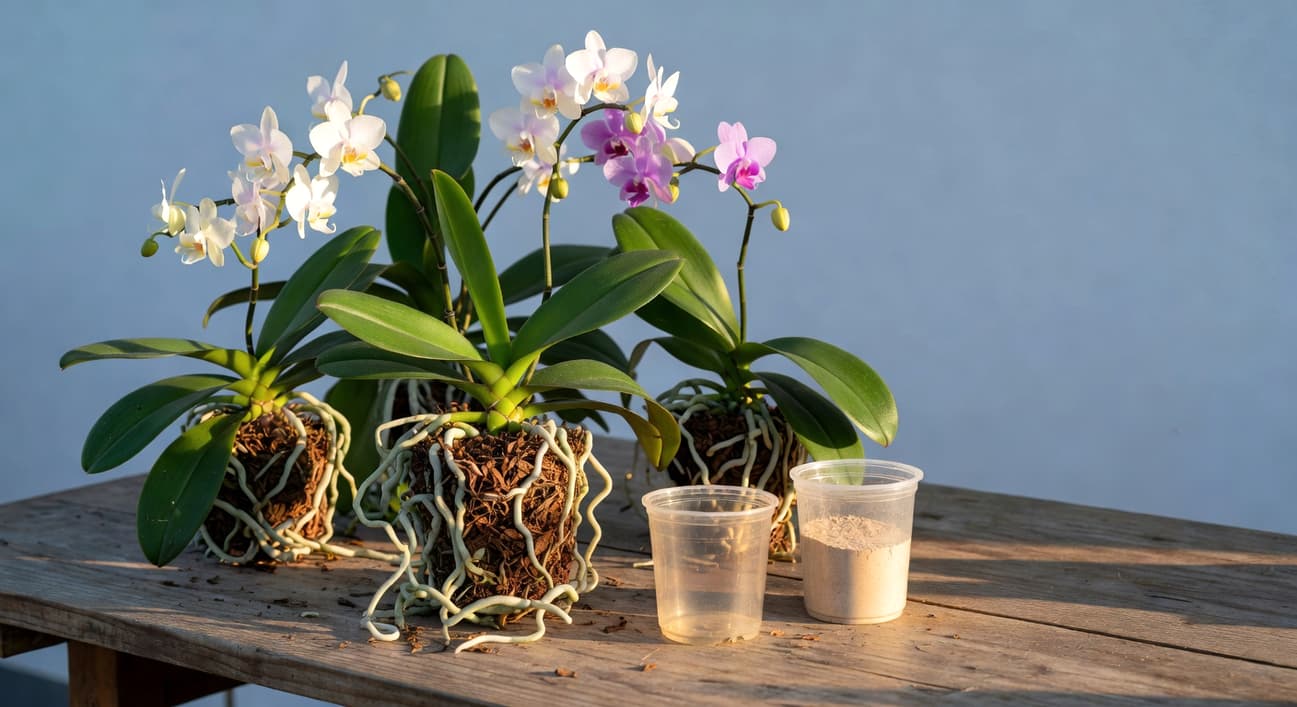 生長期(春夏)使用蘭花專用薄肥,規律少量施用,約每 2 週一次。花期前 1 到 2 個月(初秋),切換為低氮高磷鉀配方,以推動花芽分化。過度施氮會讓植株只長葉不開花,這與九重葛的邏輯一致。有機質含量低的蘭花介質幾乎不儲存養分,依賴液肥供應,所以規律施肥比濃度重要。