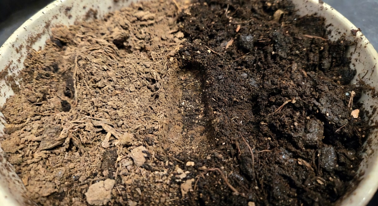 若介質濕潤甚至滲水則屬反向原因,很可能是積水或爛根,絕對不要繼續澆水。進入步驟二。