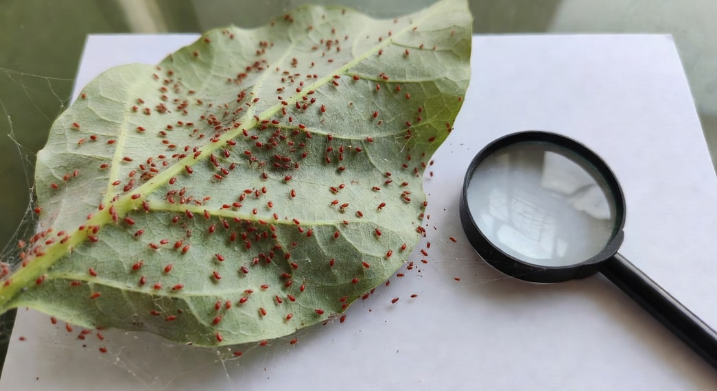 自我檢查法: 拿一張白紙貼在葉背下方,輕拍葉片,白紙上會看到會動的小點。