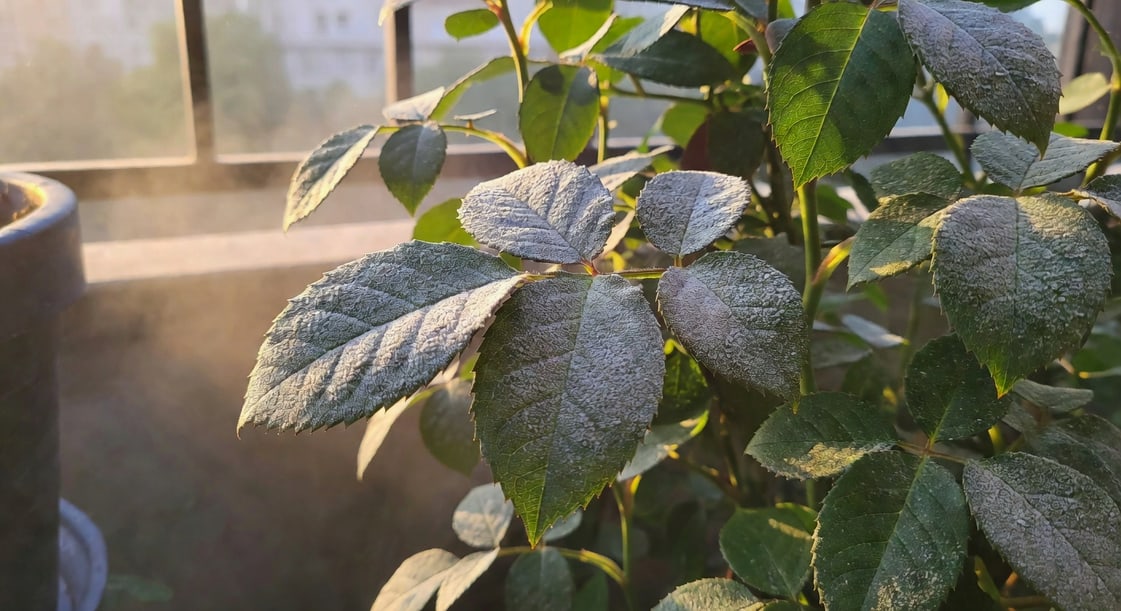 特徵四:通風不良的陽台最危險,夜溫涼、日間乾、空氣不流通,三者同時滿足就是白粉病的溫床。