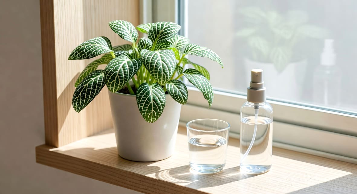 它的葉片綠底配白脈或紅粉脈紋,辨識度極高,常被當作組合盆栽的小主角。核心需求你抓這五個:溫度 60 到 85°F(16 到 29°C)、明亮散射光(北向窗最佳、絕對不能直曬)、偏酸 pH 6.5 的泥炭基質、穩定高濕度、介質「持續濕潤但不泡水」。