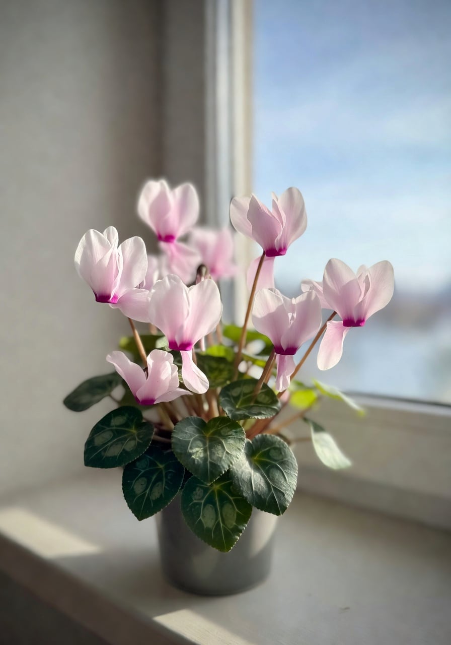 環境調整法:白天 16 至 18°C、夜間 10°C 是最理想的開花溫度帶。冬季可以擺在玄關、樓梯間、未加熱的陽台(有擋風玻璃),這些「涼室」就是仙客來最愛的奢華套房。