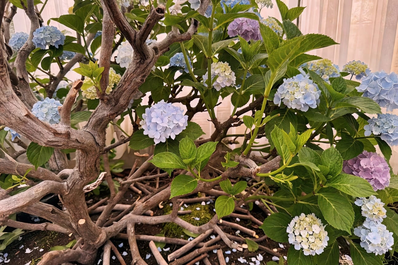 大葉繡球和橡葉繡球都是舊木開花派,汰換時機鎖定夏末花後(約七月底到九月)。此時當季花已謝、隔年花芽尚未形成,是唯一的安全窗口。