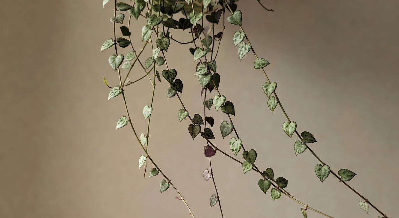 愛之蔓的養護其實很單純,光要足、水要乾透才澆、塊莖會自己幫你繁殖。把這三件事做對,這串心形珠鏈就會一路垂到地板,越長越美。