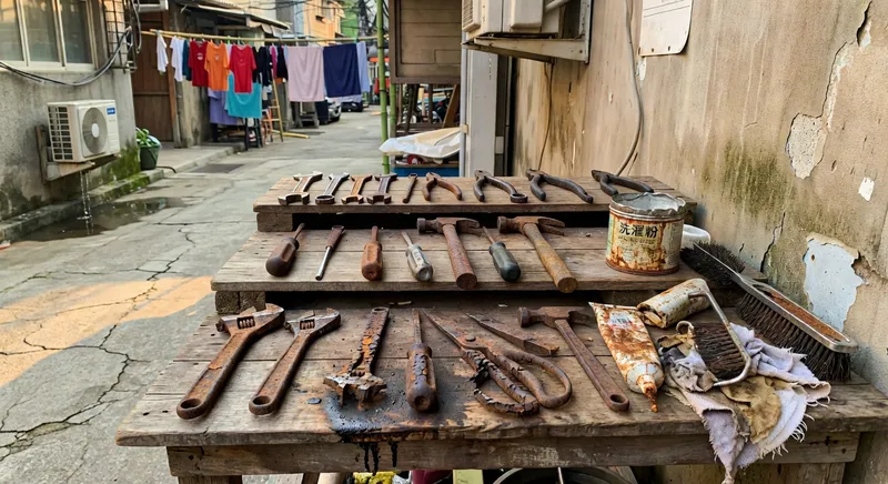 除鏽方案取決於鏽蝕程度:輕微表面鏽(如砂紙紋理)用80號砂紙打磨5分鐘;中等鏽蝕(凹凸明顯)用硬毛鋼刷來回摩擦,記得戴護目鏡;嚴重坑洞(厚度損失)用電鑽配鋼絲輪盤或砂輪機,必戴護目鏡與手套。除鏽後立刻塗馬達油混合液防止二次氧化——新鋼鐵暴露於空氣中12小時內就會產生新鏽。