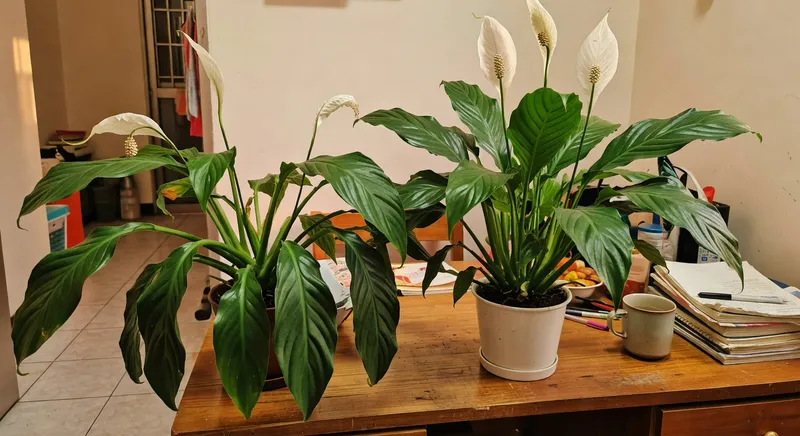 缺水的時候,白鶴芋的葉片會整片垂下來,看起來很戲劇化地「暈倒」。但別緊張——只要趕快澆透水,它幾個小時內就會完全恢復。這個特性其實對健忘的人來說非常友善,因為它會主動提醒你「嘿,該澆水了」。