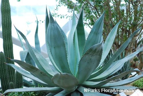 多肉草本植物。厚實、多肉的葉片呈倒披針形。葉緣排列著短的紅褐色刺,這些刺位於葉緣的小乳突上。葉尖裝有長的紅褐色刺。無毛的葉片為藍灰色至藍綠色,並覆蓋著蠟質光澤。