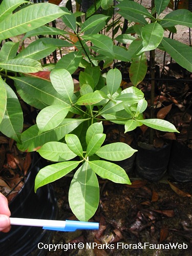 高 5-35 米的中小型樹木,具有陡峭而高聳的支柱根。葉子呈 3 輪排列,有柄,葉片稍革質,狹長形,大小約 10–15 厘米長和 2.5–4.5 厘米寬。它有頂生花序,花朵芬芳,花瓣白色且有毛。蓇葖果長 50–70 厘米。種子為長橢圓形,一端尖,長 1 厘米。