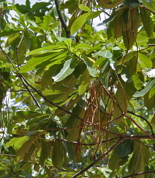 具小支柱根的樹木,高3-40米。葉片紙質或略粗糙,排列成4輪(開花枝條上偶爾為3輪),葉柄基部無明顯葉托。葉面光滑,葉背光滑至有絨毛。葉形多變,狹倒卵形,有時為倒卵形至狹橢圓形。花朵芬芳、白色,花冠裂片在開放花中展開;在花苞中向右重疊。果實為無毛的蓇葖果,長20-40 cm,直徑2-2.5 mm。