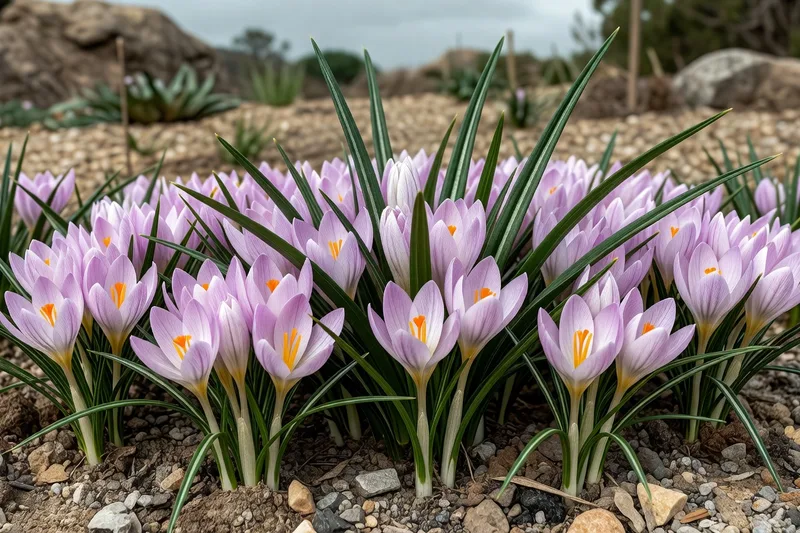 藏紅花屬植物是矮小落葉多年生植物,從球莖生長,葉片呈線狀,通常有銀色中央條紋,花朵杯狀、有時芳香,在秋季或早春開花