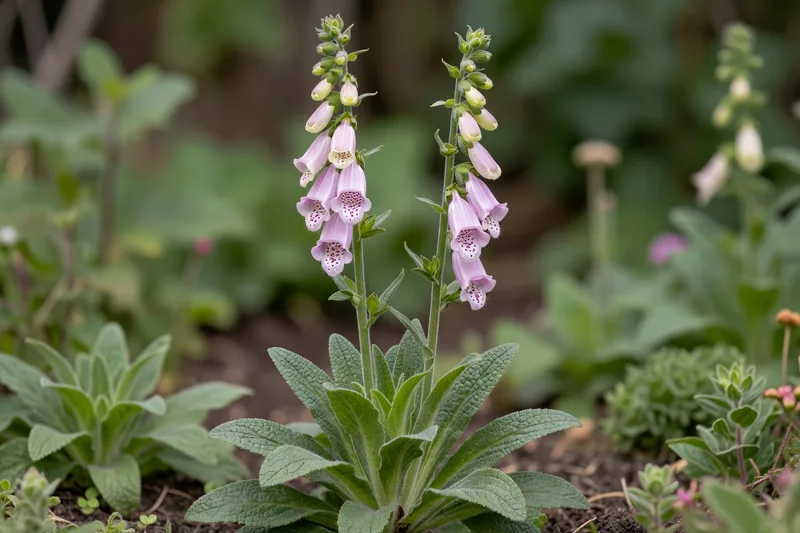 一種緊湊的半常綠多年生植物,花期高約30公分,具有木質基部和布滿長銀灰色毛的皺紋綠葉,主要聚生在植物基部。直立的花穗上帶有小而下垂的管狀花,通常為粉色,但有時為白色,並有紫色斑點,從春季到夏末開花。