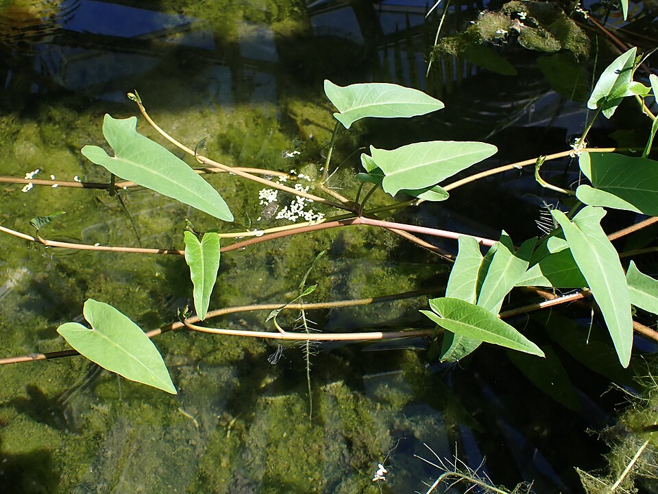 半水生、多年生草本匍匐藤本,可長至3米長。葉片光滑,形狀如箭頭。葉片長約5-15厘米,寬2-6厘米,葉柄約3-14厘米長。葉片簡單且互生。在水中,葉片保持在水面以上。漏斗狀、雌雄同株花朵(寬5厘米、長4-10厘米),單生或小簇生於葉腋(葉柄與莖之間的區域)。花朵可為白色、粉紅至淺紫色。圓形或橢圓形蒴果(直徑1厘米),含1-4粒種子。蒴果成熟時變木質並變褐色。種子顏色從灰色、褐色到黑色不等。每株植物產生約175-245粒種子。