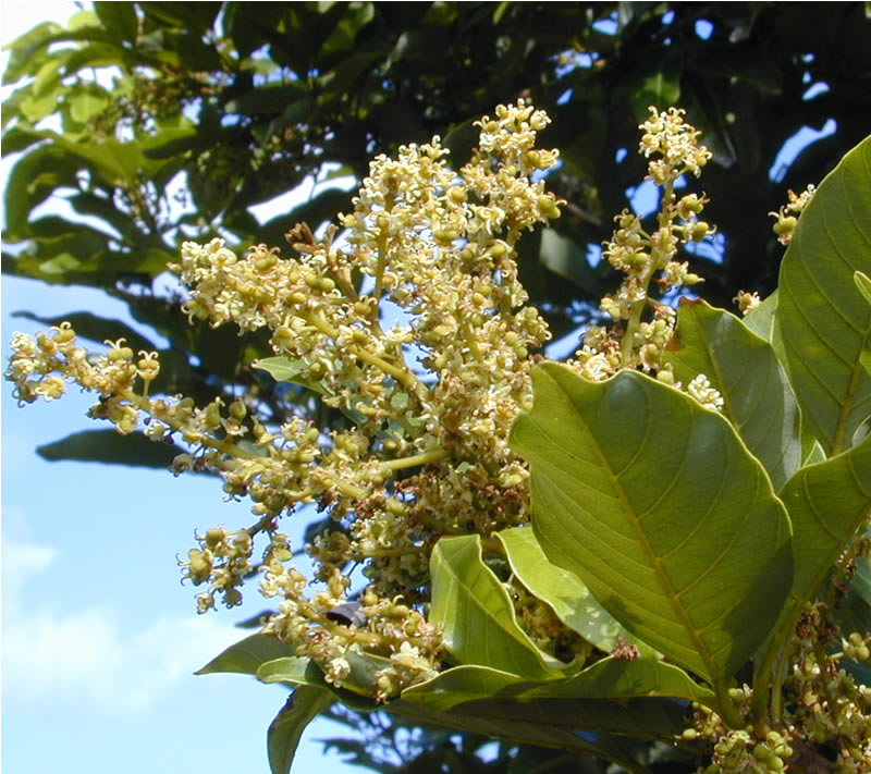 It is a tree, usually less than 10 m tall, but can sometimes reach up to 36 m tall in its habitat. The trunk can reach up to 60 cm diameter and the buttress can reach up to 2.4 m tall. Leaves are compound, paripinnate and spirally arranged. The leaf stalk (petiole) is 0.7 – 11.5 cm long. Each leaf comprises of 1 – 7 leaflets. They are elliptic (4 – 20 cm long and 1.7 – 11 cm wide) and thinly leathery to thinly papery. Both the leaflet base and tip are variable. The base can be blunt, rounded or narrow (attenuate) while leaflet tip can be short, broad to obtuse. The upper surface of the leaflet can be glabrous or presence of short hairs (puberulous) on the midrib. The underside can be glabrous or covered with minutely silky hairs. The domatia are usually present and can be scarce or absent. Inflorescence occur as a long spike (thyrsoid) at the axillary or partly together pseudo terminal position. The inflorescence comprises of many small light green flowers. The flowers are fragrant and they have no petals and 5 – 8 stamens each. The fruit is ellipsoid to subglobular (4 – 6.5 cm long and 2.5 – 5 cm wide) and covered with coarse spine which can reach up to 1.5 cm high. The spines are bulbous-based and often merging at the base or sometimes knobby with short tongue-shaped appendages. It is fleshy and turns purple-red when ripe. The seed is surrounded with a thick, white and sweet-tasting sarcostesta.