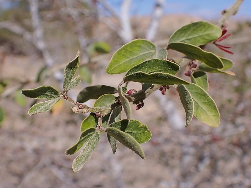 It is tree, up to 15 m tall, single or multiple trunks with dense bushy crown. Trunk become gnarled with age and twigs have a pair of sharp spines at the base of the leaf stalks which are modified from stipules.